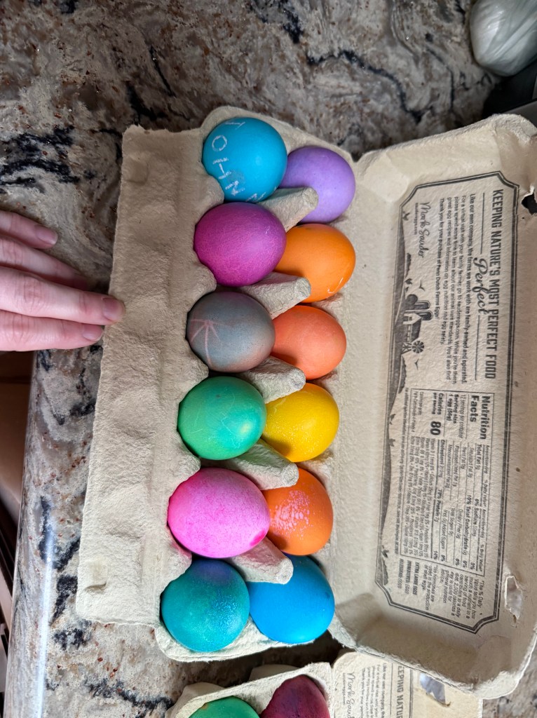 Well, don’t get your hopes up for anything of substance, but I couldn’t let this title I thought of go to waste lol. Guys, things are Not looking good, I really don’t know what the path forward from here, never mind from where we actually end up, could be. I colored 2 dozen eggs by myself LMAO. We just need to try our best to I am manifesting good health for everyone. I don’t really love the state of most things right now. Who wants to make it better though? Some people. Just hard. Maybe it’s not. Maybe we all need to just work together and ostracize those who oppose our mission. What’s our mission? Idk. A future where a single income or 2 people working part time jobs can afford to live an average life. How do we cut out fraud when entire industries are built around it. It’s interesting how my phone knew to suggest industries there. I hope everyone is holding up. I feel very frozen lately! I feel like when I was in school, like I can’t do anything else that requires like any mental bandwidth because I should be doing the thing. I feel like I should be preparing for the worst but it’s just like a lot LMAO. I feel so dramatic too. But I also don’t? Idk. It’s just been a really weird purgatory-like experience for me lately. I don’t think heaven is what’s waiting for me on the other side though.